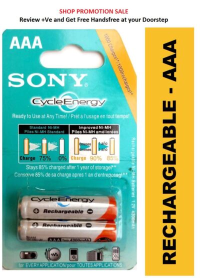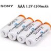 High-quality Sony AAA rechargeable NiMH batteries with 1.2V 4300mAh capacity. Long-lasting, low self-discharge, and capable of up to 1000 recharge cycles. Perfect for remotes, toys, wireless mics, and other high-drain electronics.