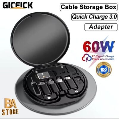 Amplifier Hub Extreme 60W Fast Charging Cable Set – Type-C, Micro USB, Lightning – Data Cable & USB Charger with Storage Box