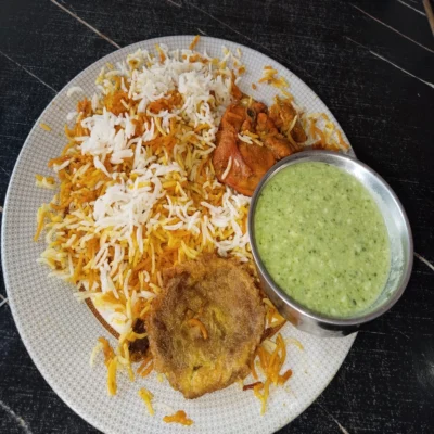 Biryani bilkul taaza, garam aur halka sa oil shine ke sath serve hoti hai, jo dekhte hi bhook jaga deti hai.