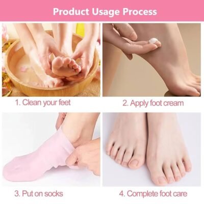 Soft silicone gel moisturizing socks designed to repair cracked heels, dry skin, and calluses. Locks in moisture, improves skin smoothness, and provides comfortable foot spa care for men and women.