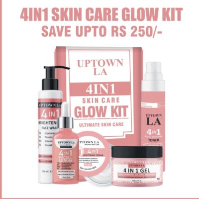 UPTOWN LA’s 4-in-1 Skin Whitening Bundle includes Whitening Serum, Cream, Facewash, and Toner Gel to brighten, hydrate, and smooth skin. Targets dark spots, uneven tone, and signs of aging for a luminous glass skin effect.