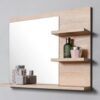 Elegant bathroom mirror with built-in wooden shelves for storage and display — perfect for bathrooms, entryways, and living spaces.