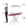 The board offers two adjustable height levels, allowing you to iron comfortably whether standing or seated. Measuring 120 x 40 cm, it provides ample space for garments, linens, and larger items.