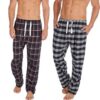 Pack of 2 – Men’s Checkered Lounge Pants Soft Cotton Blend Pyjama Bottoms with Pockets