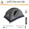 Durable and lightweight camping tent (200×150 cm) with waterproof double-coated fabric, fiberglass frames, ventilation net door, and storage pockets. Perfect for 2 people, solo campers, or couples.