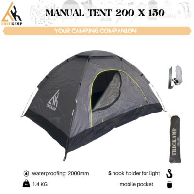 The Treckamp Camping Tent (200×150 cm) is designed for outdoor enthusiasts who want comfort, convenience, and durability in one package. With enough floor space to accommodate up to 2 people, this tent is ideal for couples or solo campers who enjoy nature getaways.
