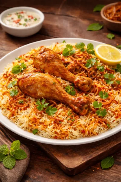 Biryani bilkul taaza, garam aur halka sa oil shine ke sath serve hoti hai, jo dekhte hi bhook jaga deti hai.