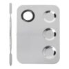 Durable acrylic makeup palette with stainless steel spatula for hygienic and precise mixing of foundation, concealer, and beauty products. Perfect for professionals and beauty lovers.