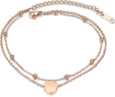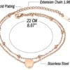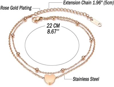 Double Chain Heart Anklet for Girls – Elegant Gold-Plated Foot Bracelet with Adjustable Length
