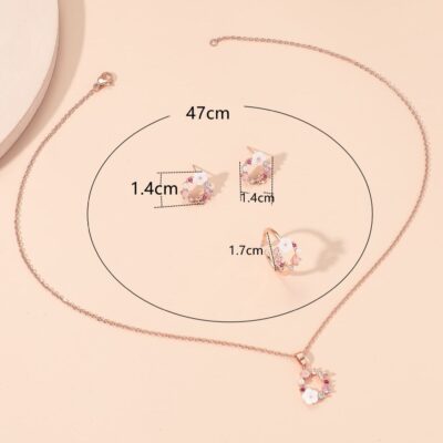 4-Piece Rose Gold Jewelry Set for Women – Flower Design Necklace, Ring, Earrings & Accessories with Zircon